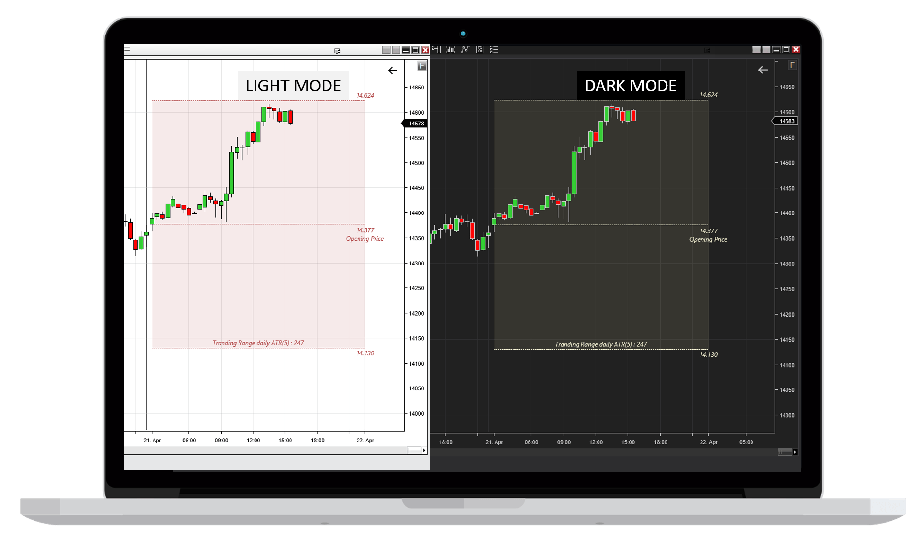 Learn from the past. The TR PRO stores ranges from previous days (user-defined) and „freezes“ them on the chart. This allows you to perform high-quality backtesting and see exactly how price reacted to prior volatility limits.