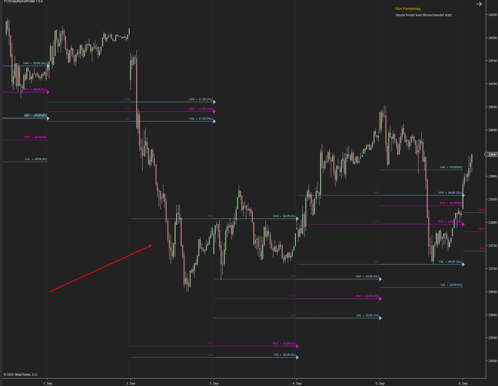 Value Area (VA) & POC: Know exactly where 70% of the trading action took place.