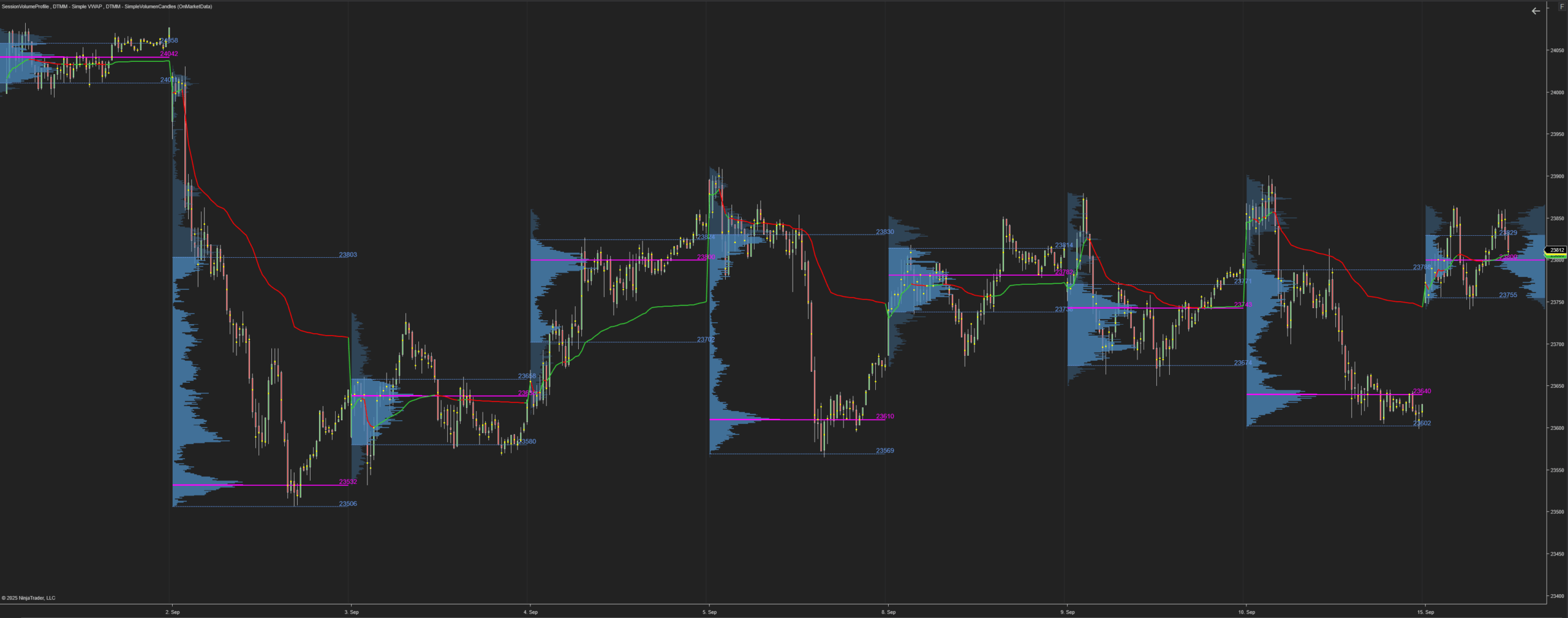 Intraday & Session Profiles: Identify High Volume Nodes (HVN) as targets and Low Volume Nodes (LVN) as rejection zones.
