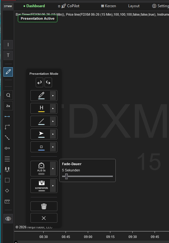 Auto-Fade Mode: Draw temporary lines that automatically disappear after 5 seconds—perfect for live sessions without cluttering your chart.